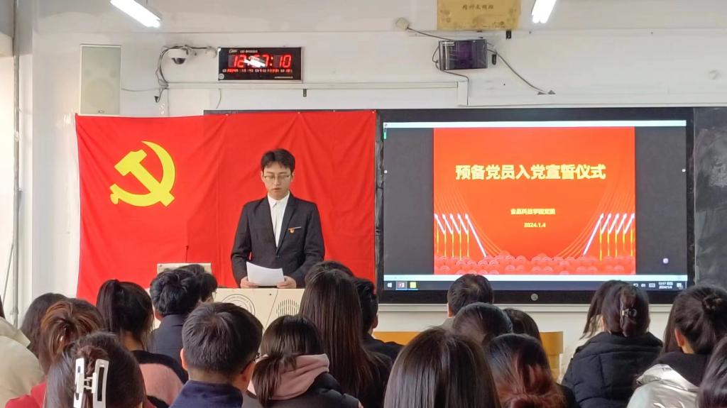 为深入开展党性教育,进一步提升党员党性修养,增强党组织的凝聚力、战斗力和影响力。1月4日下午,食品公司党委在昌黎校区1号楼B205举行了2023年新党员入党宣誓仪式,公司党委书记出席仪式,并为新党员佩戴党徽。入党仪式由组织员李瑞杰主持。
