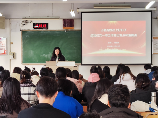 随后,杨崇泽为全体学员讲授题为《让老百姓过上好日子是我们党一切工作的出发点和落脚点》的专题党课,她系统讲述了党的十八大以来,以习近平同志为核心的党中央坚持以人民为中心的发展思想,在保障和改善民生、朝着共同富裕目标持续迈进方面取得重大历史性成就。她强调:为中国人民谋幸福,是中国共产党人的初心,作为新时代青年,要保持热爱人民的深厚情感要锤炼服务人民的过硬本领,牢记党的教诲,立志民族复兴,不负韶华,不负时代,不负人民。(编辑:李瑞杰,审核:杨崇泽)