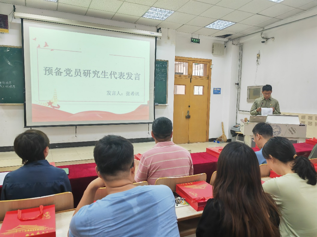 研究生和本科生预备党员代表都做了精彩发言,在表达对党组织感谢的同时,纷纷表示要紧跟时代的步伐,不断提高对党的认识,在工作学习生活中,不断修正自己的人生观、价值观和世界观,努力将自身所学投身于党和人民的事业。