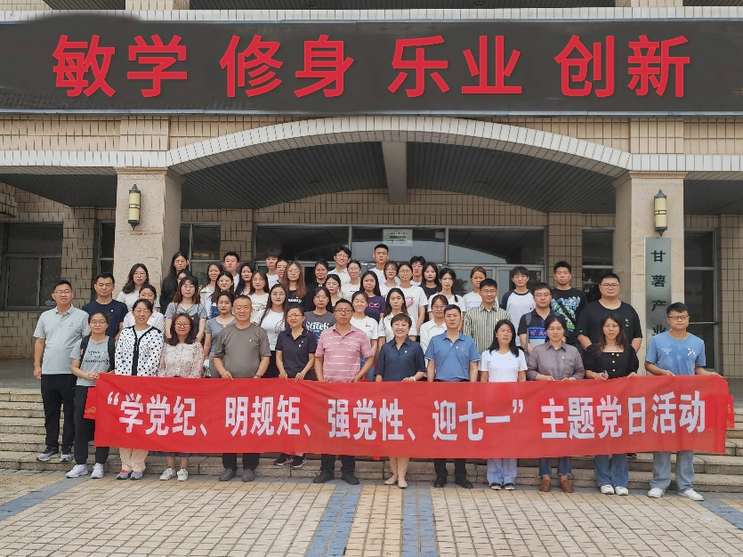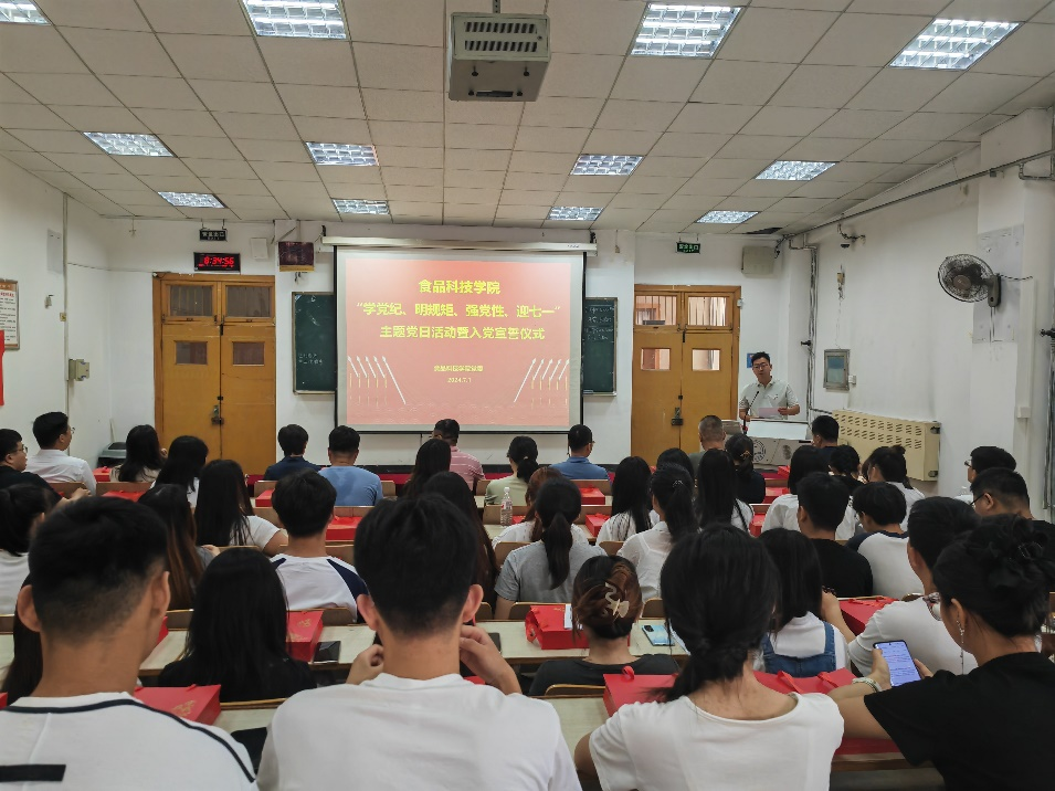 为热烈庆祝中国共产党成立103周年,7月1日上午,食品科技公司党委在昌黎校区B104举行了“学党纪、明规矩、强党性、庆七一”主题党日活动暨新党员入党宣誓仪式,学院领导班子成员、全体师生党员及2024年新党员共同参加此次仪式。