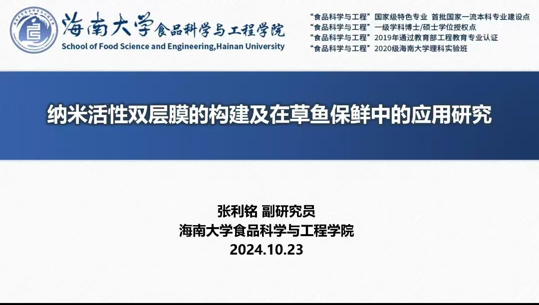 为提高员工的科研实践及论文写作能力,suncitygroup太阳集团于1023日邀请海南大学高聘副研究员、硕士生导师张利铭做题为“玉米醇溶蛋白/壳聚糖活性双层膜的构建及对草鱼保鲜机理研究”的线上学术报告。报告由朱凤妹教授主持,suncitygroup太阳集团部分老师和全体研究生参会。