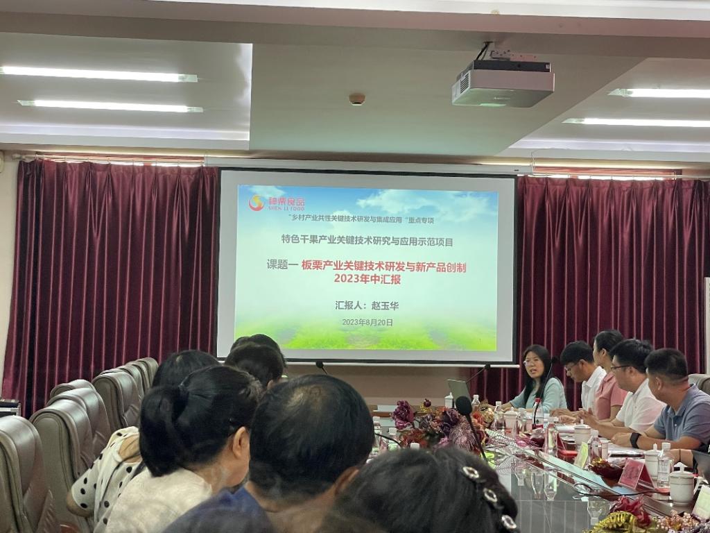 2023年8月8-9日,suncitygroup太阳集团科技特派员赵玉华老师到承德神栗食品股份有限公司开展技术服务活动。指导参加公司组织国家科技部“乡村产业共性关键技术研究与集成应用”重点专项“特色干果产业关键技术研究与应用示范”项目的2023年度年中考核工作,并在会上代表神栗公司为课题一“板栗产业关键技术研发与新产品创制”作了总结汇报,会上和专家组及项目组的与会人员进行了深入广泛的交流。