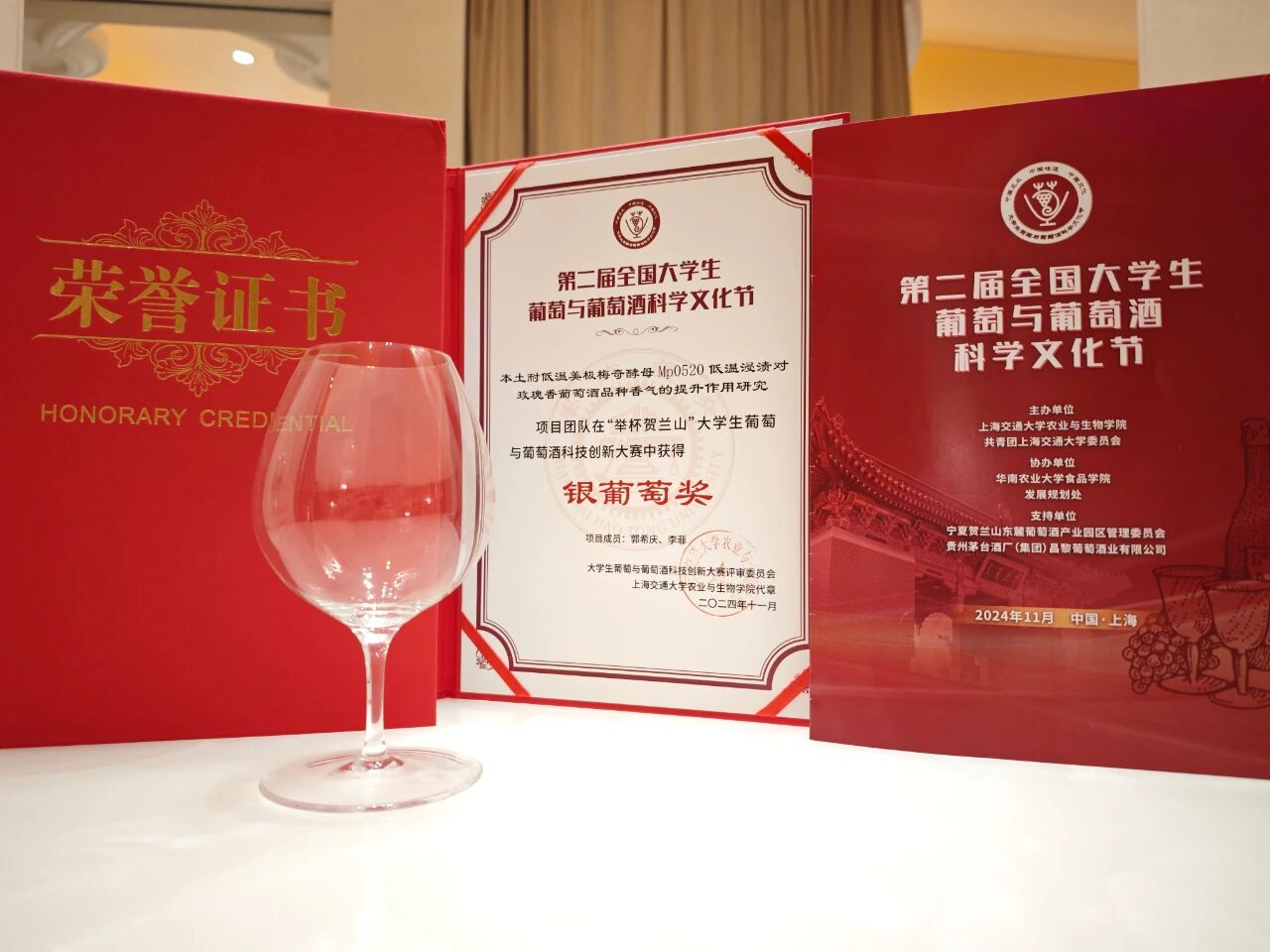 2024年11月24日,第二届全国老员工葡萄与葡萄酒科学文化节在上海交通大学闵行校区隆重举办。suncitygroup太阳集团阎贺静老师指导的研究生郭希庆、李菲的项目团队在“举杯贺兰山”老员工葡萄与葡萄酒科技创新大赛中荣获“银葡萄奖”。