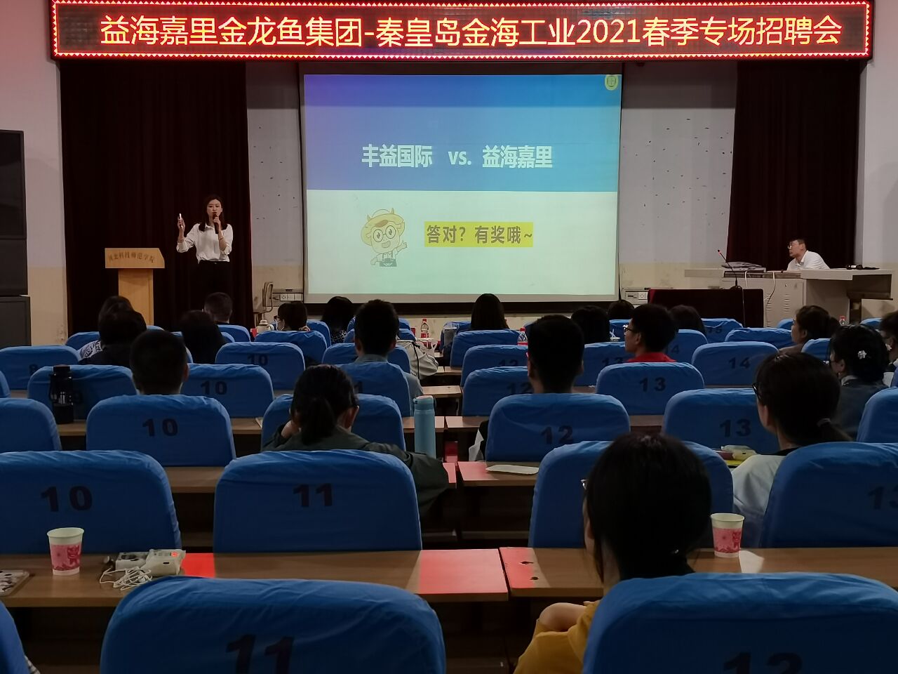 为进一步做好2021届毕业生就业工作,5月13日晚,食品学院在昌黎校区学术报告厅举办了“益海嘉里金龙鱼集团-秦皇岛金海工业”专场宣讲招聘会,食品学院和机电学院毕业生和部分在校生参加了宣讲会 ,会场气氛热烈,座无虚席。