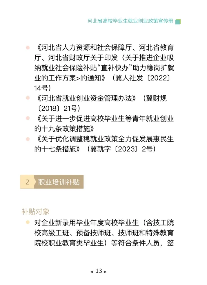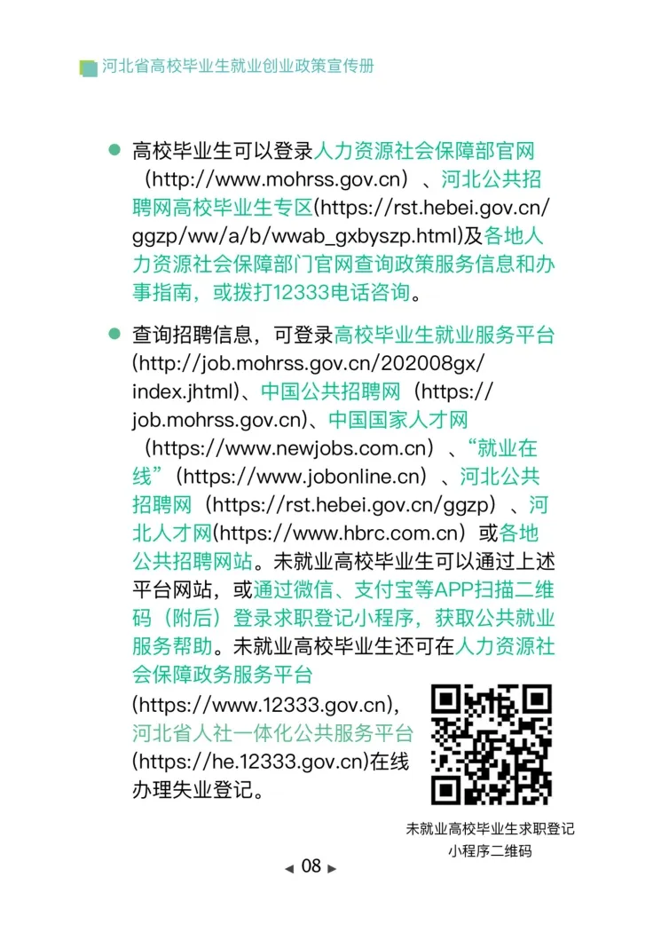河北省人力资源社会保障部门编制了《河北省高校毕业生就业创业政策宣传册(2024)》