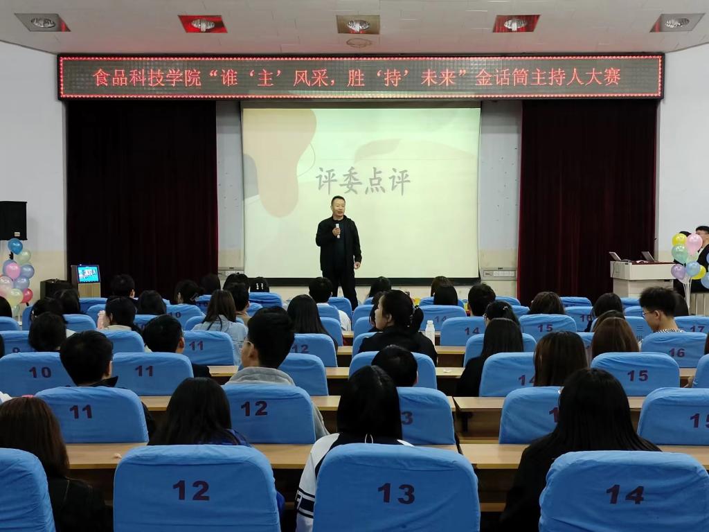 决赛分为我型我秀、绕口令挑战、随机应变、两人搭档四个环节,选手们妙语连珠展现魅力,默契合作绽放光彩。经过激烈的角逐,王耿文、张晓添、雷浩然获得本次大赛的前三名。此次比赛为怀揣主持梦的同学搭建了展示才艺、实现梦想的舞台,也展现了食品学院学子的积极向上的精神风貌和当代老员工的青春风采。(编辑:董雪童,审核:杨崇泽)