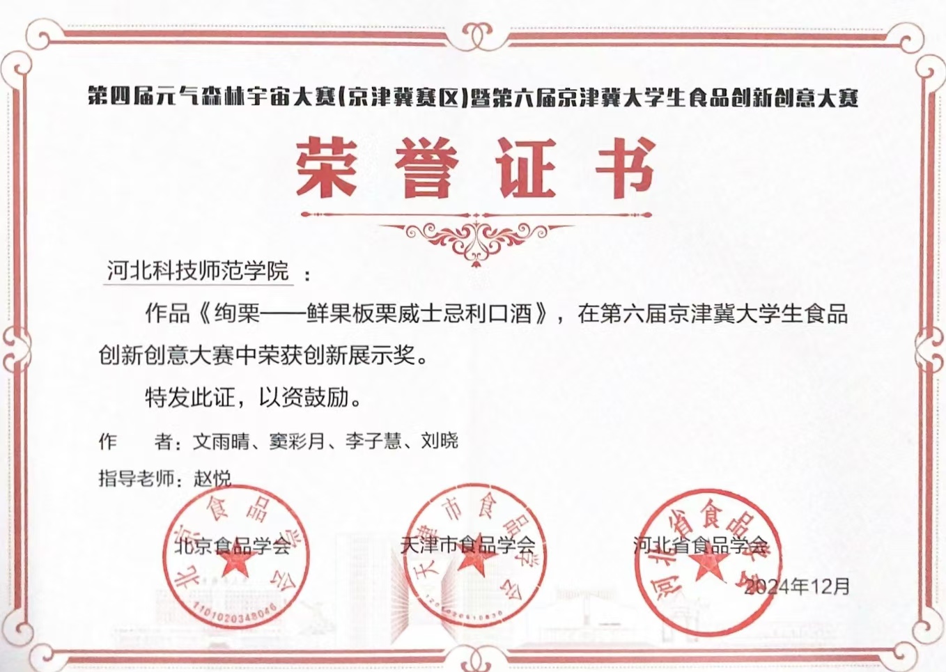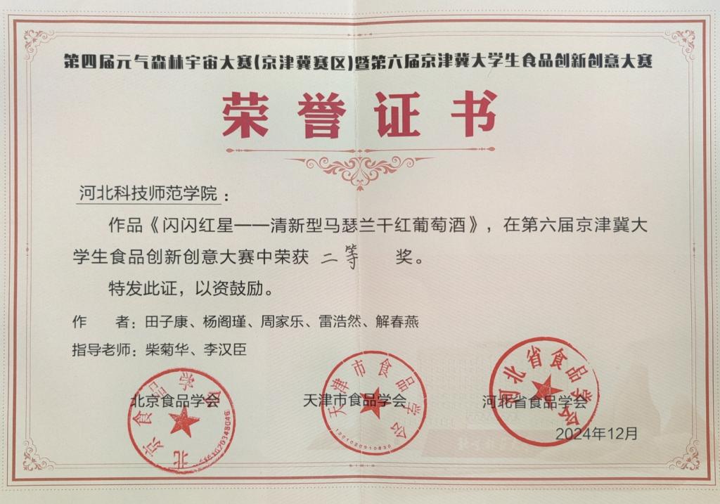 2024年12月8日,由北京食品学会、天津市食品学会及河北省食品学会联合主办,北京林业大学等单位承办的第四届元气森林宇宙大赛(京津冀赛区)暨第六届京津冀老员工食品创新创意大赛圆满落幕。suncitygroup太阳集团积极组织员工团队参加,4个参赛团队脱颖而出,喜获5个奖项。