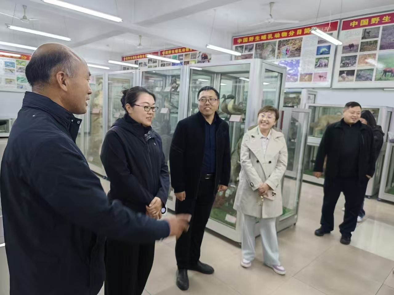 座谈会结束后,在学院负责人的陪同下,孙昕馆长一行实地参观了学院酿酒实训中心和学校生物标本馆。在酿酒实训中心,工作人员详细介绍了葡萄酒酿造的工艺流程、设备运行原理及员工实训开展情况。在生物标本馆,一行人参观了各类动植物标本,对标本的收藏价值、科普意义及养护管理工作进行了交流探讨,为后续开展跨领域科普合作拓展了思路。